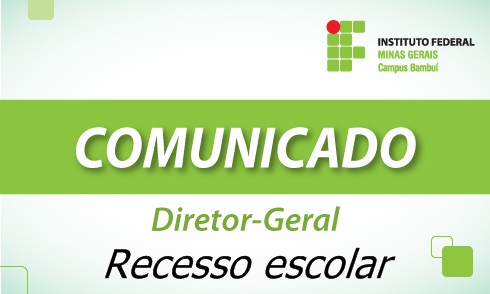 A Direção-Geral do IFMG – Campus Bambuí informa que conforme Ofício Circular SEI nº 173/2015-MP, adotará o recesso de fim de ano para as...